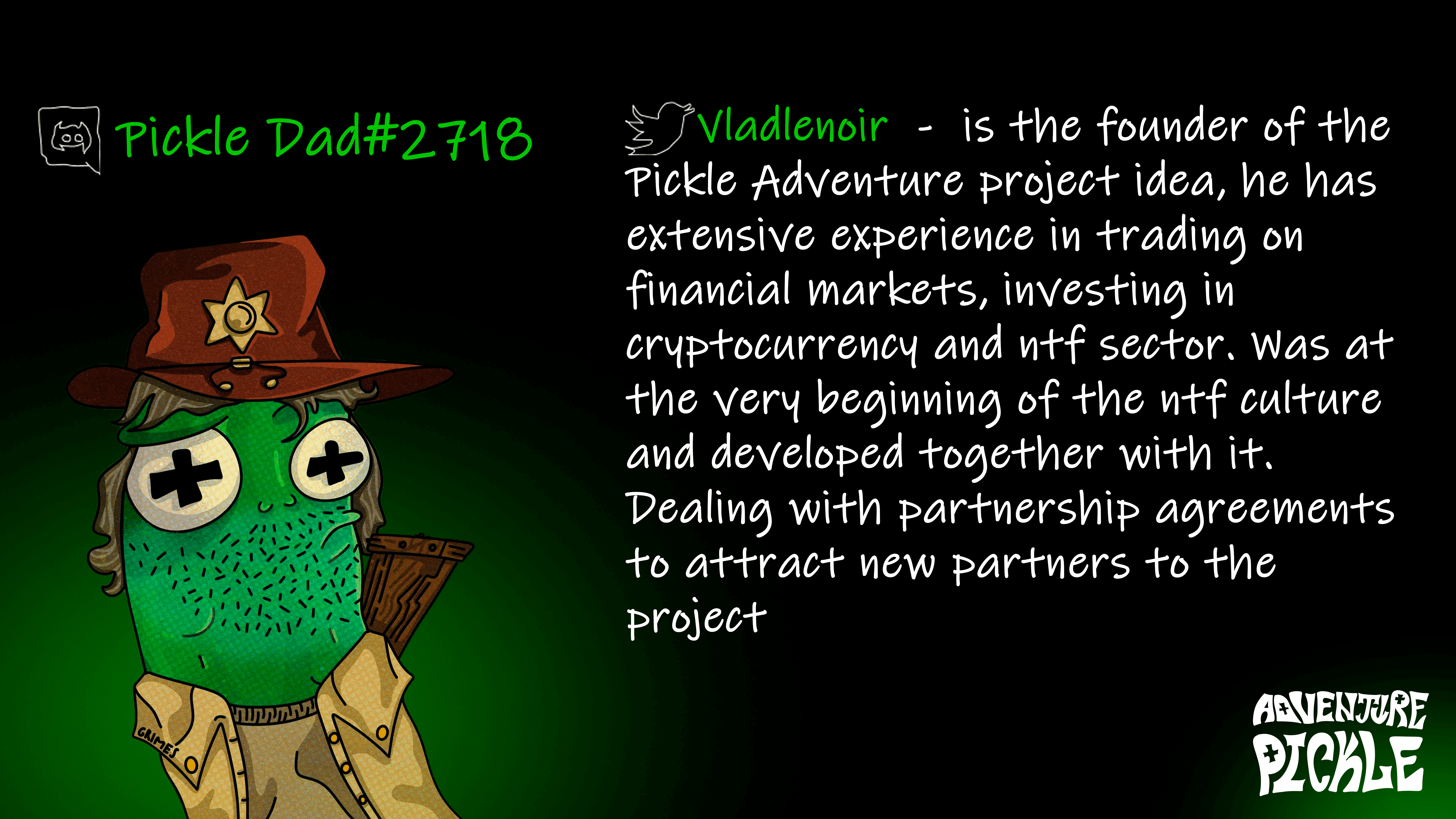 <figure><img src="https://261615253-files.gitbook.io/~/files/v0/b/gitbook-x-prod.appspot.com/o/spaces%2FmdpAENcIky98GFwiokcv%2Fuploads%2F6lsk3B2jDLcJht1tiqQf%2FPickle%20Dad.png?alt=media&#x26;token=9619f7b9-0ca6-42dc-98ed-242de521c7d0" alt=""><figcaption></figcaption></figure>